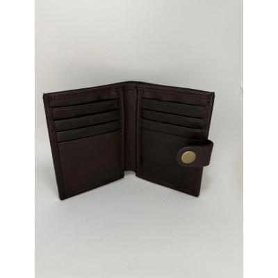 Confeccionada en piel de tono chocolate oscuro con acabado liso y bordes redondeados.