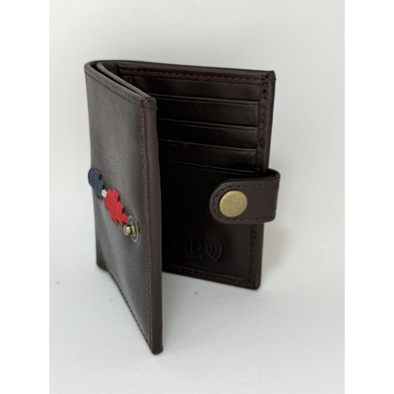 Diseñada para el uso diario, esta cartera combina la sobriedad de la piel con un sutil detalle de bordado tradicional. Es el accesorio ideal para quienes buscan organización sin renunciar al estilo auténtico.