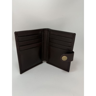 Confeccionada en piel de tono chocolate oscuro con acabado liso y bordes redondeados.