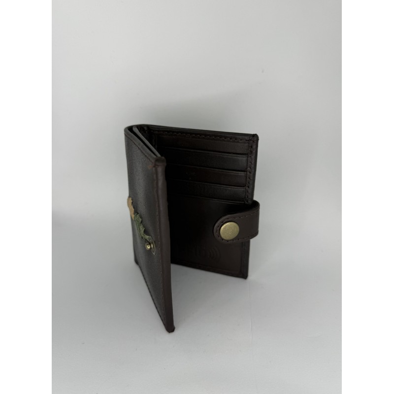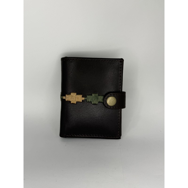 Diseñada para el uso diario, esta cartera combina la sobriedad de la piel con un sutil detalle de bordado tradicional. Es el accesorio ideal para quienes buscan organización sin renunciar al estilo auténtico.