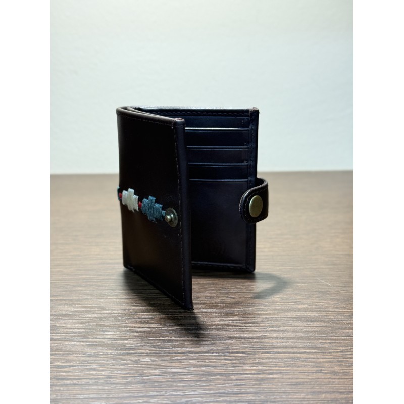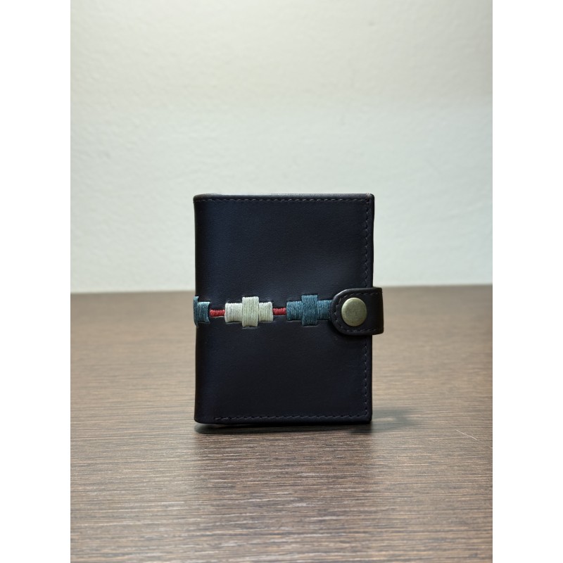 Diseñada para el uso diario, esta cartera combina la sobriedad del cuero legítimo con un sutil detalle de bordado tradicional. Es el accesorio ideal para quienes buscan organización sin renunciar al estilo auténtico.