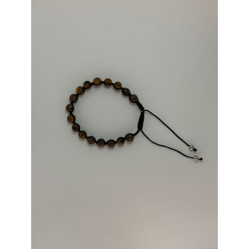 Pulsera de cuentas marrones y negras, se puede ajustar a la muñeca.