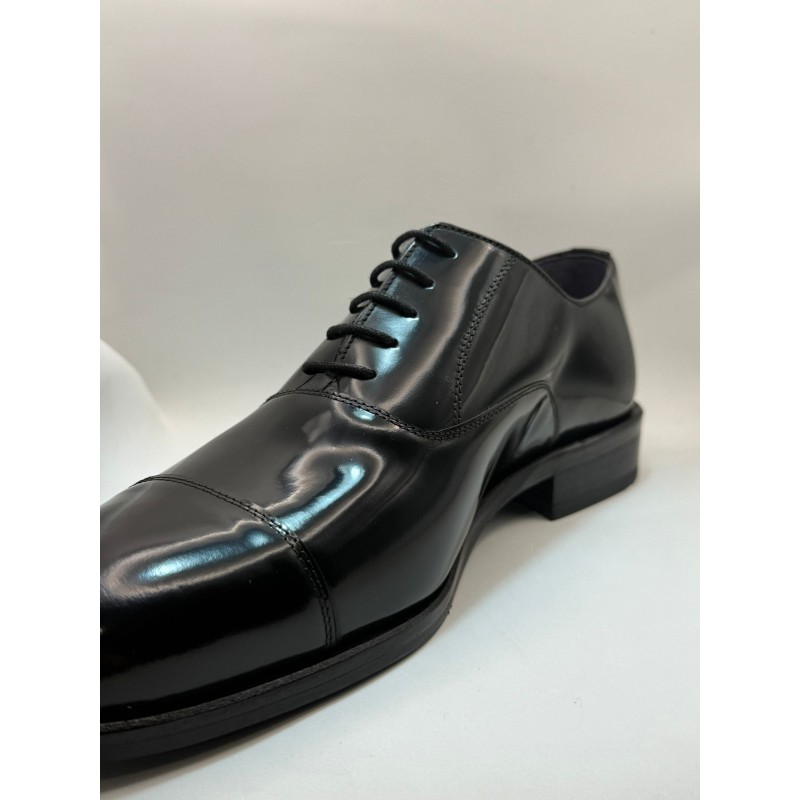 Zapato de vestir en color negro para hombre. Corte realizado en piel florentic con detalle de costura en la puntera, forro y plantilla interior de piel que aseguran una buena transpiración, cierre mediante cordones y suela sintética dibujada para asegurar una correcta adherencia muy ligera.